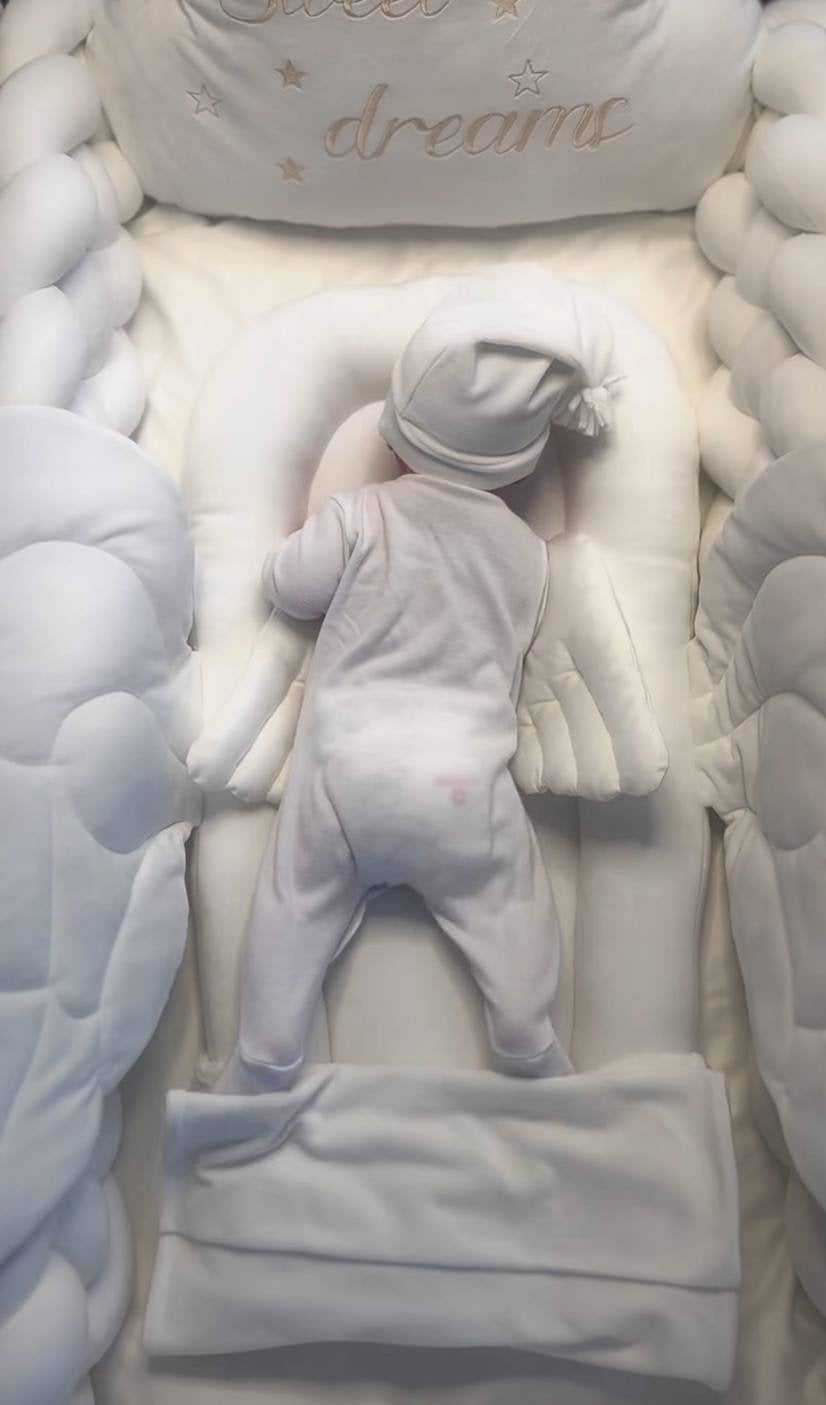 Артистка опублікувала свіжі кадри з малюком у своєму Instagram. На знімках виконавиця то годувала синочка, то обережно тримала на руках, то клала до люльки. Як виявляється, ліжечко у малюка особливе. За словами виконавиці, ця люлька передається в їхній родині в спадок. Аліна Гросу лиш оновила її та доповнила постільною білизною блакитного та білого кольорів.