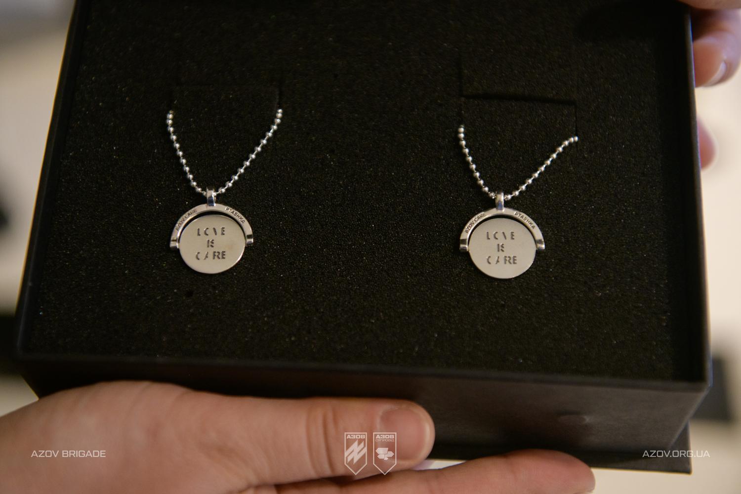 Герцог Сассекський отримав прикрасу з надписом Love is care (“Любов це турбота”)”, – розповіли в “Азові”, показавши фото прикрас.