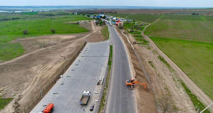 Будівельні роботи на об’єкті активно просуваються. Наразі завершено планування основи дорожнього покриття, змонтовано каркаси будівель (колони, балки та ригелі), влаштовано плиткове покриття та систему фільтрації стічних вод. Також укріплено укоси земляного полотна монолітними бетонними плитами.