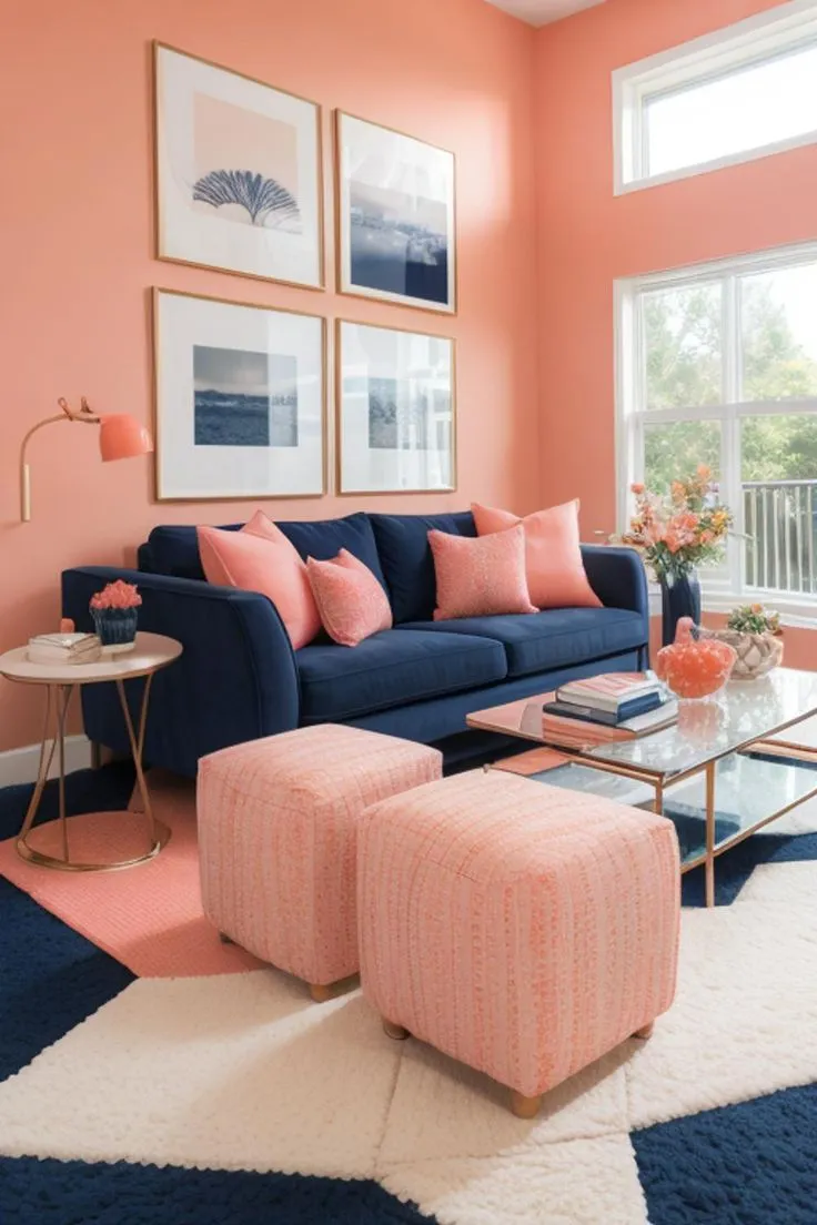 Дизайнерка інтер'єру Мелінда Браунінг вважає, що поєднання темно-синього та коралового часто видається занадто штучним. Намагання створити свіжий і молодіжний стиль, зрештою, справляє дитяче враження. Особливо це стосується варіантів, де ці кольори доповнюють яскраво-білим і використовують у смугах або шевронних візерунках.