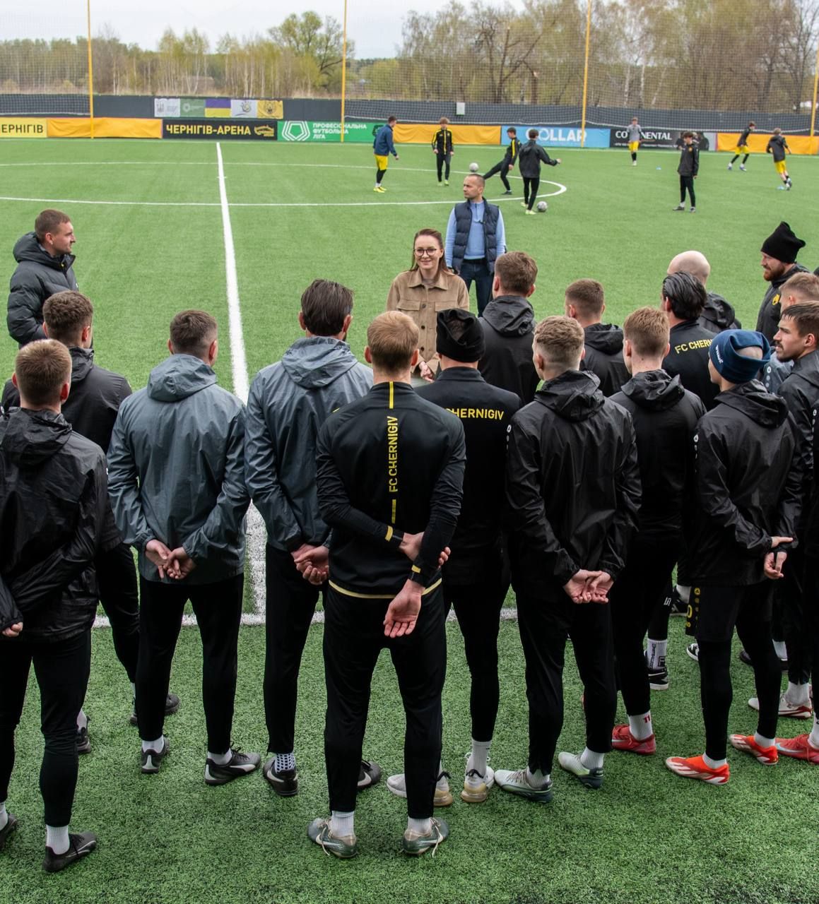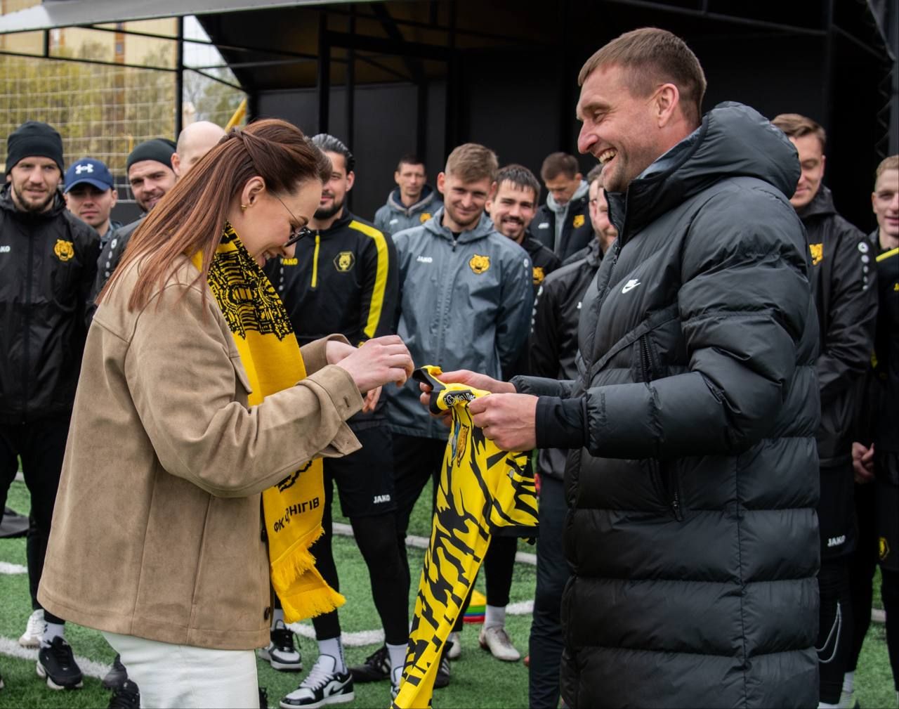 За інформацією клубу, прем'єр-міністерка відвідала стадіон "Чернігів-Арена" та провела зустріч із гравцями та тренерським штабом Чернігова. Клуб подарував їй пам'ятну футболку з номером 12.
