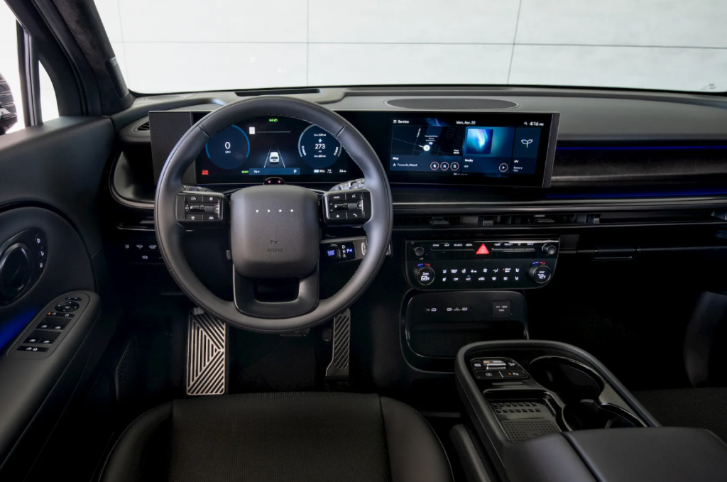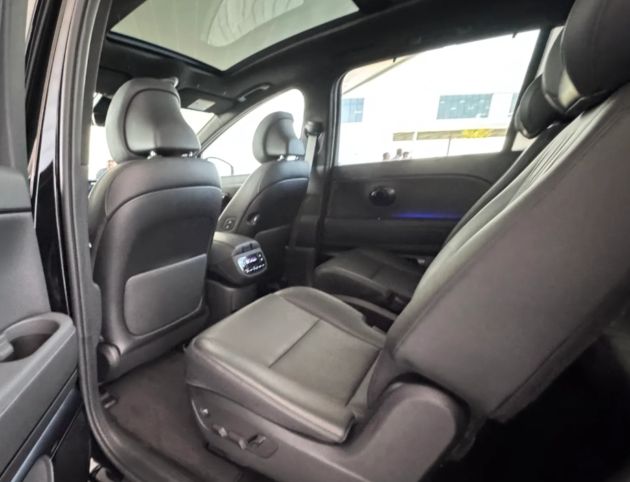 Усередині також все чорне, включаючи сидіння, кермо, кнопки та екрани, з чорною алюмінієвою обробкою салону. Як і належить топовій комплектації, IONIQ 9 Calligraphy Black Ink оснащений майже всіма технологіями, які пропонує Hyundai.