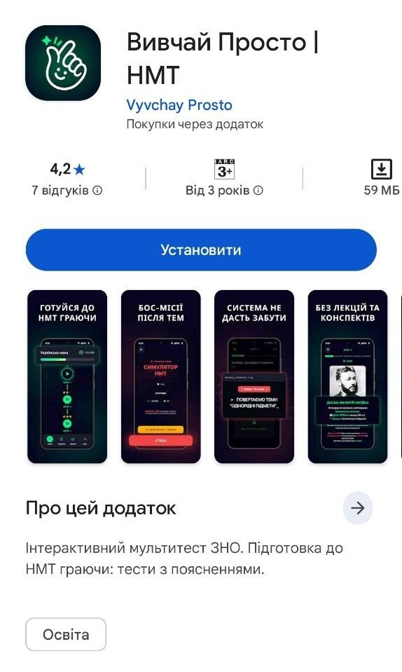 «1300 скачувань за місяць, 19 місце в рейтингу „освіта“, та головне — купа дітей, які тепер кайфують від підготовки до НМТ», — констатував Федоров.