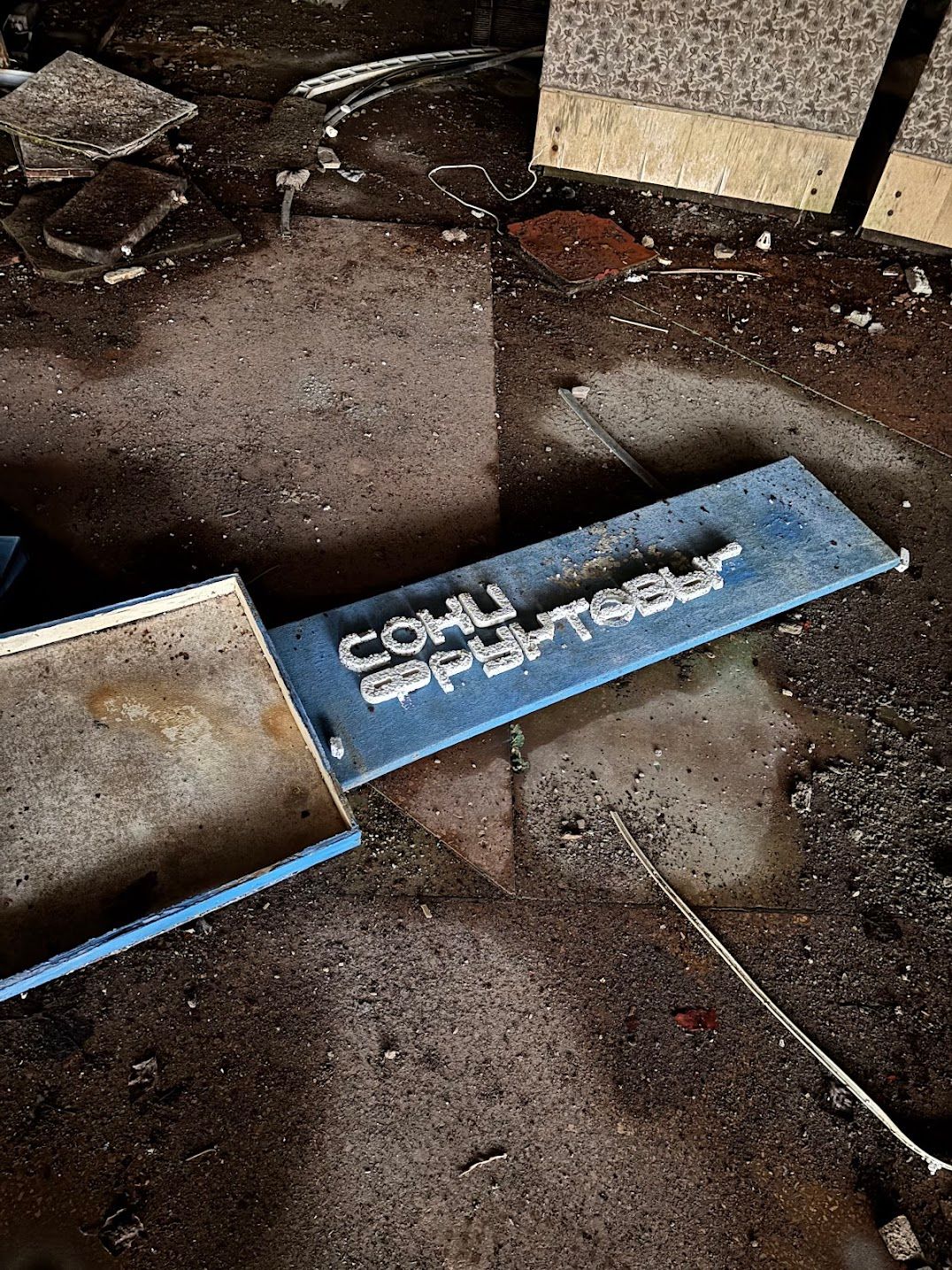 У третій школі на вулиці Спортивній розкидано сліди радянської освіти – пропагандистські віршики з підручників, сторінки з Леніним, гумовий пупс та зошити. У басейні "Лазурний" поруч – прогнилий паркет, аварійні сходи та тривожна порожнеча чаші басейну. Поруч – житлові будинки наче в ідеальному стані: однакові вікна, чисті білі фасади. Поки не підійдеш ближче.