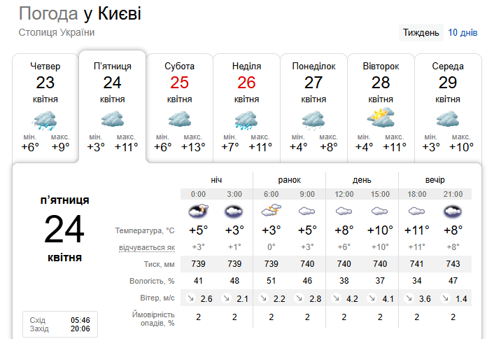 Погода у Києві 24 квітня / © скриншот