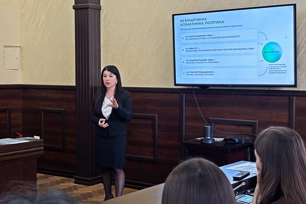 Українське екологічне законодавство змінюється під впливом євроінтеграції, а кліматична політика дедалі більше впливає на рішення у сфері довкілля, енергетики та розвитку громад. Тому майбутнім юристам важливо розуміти не лише норми права, а й те, як вони працюють на практиці. Щоб показати цей зв’язок, Екодія провела міні-курс для студентів Київського національного університету імені Тараса Шевченка.