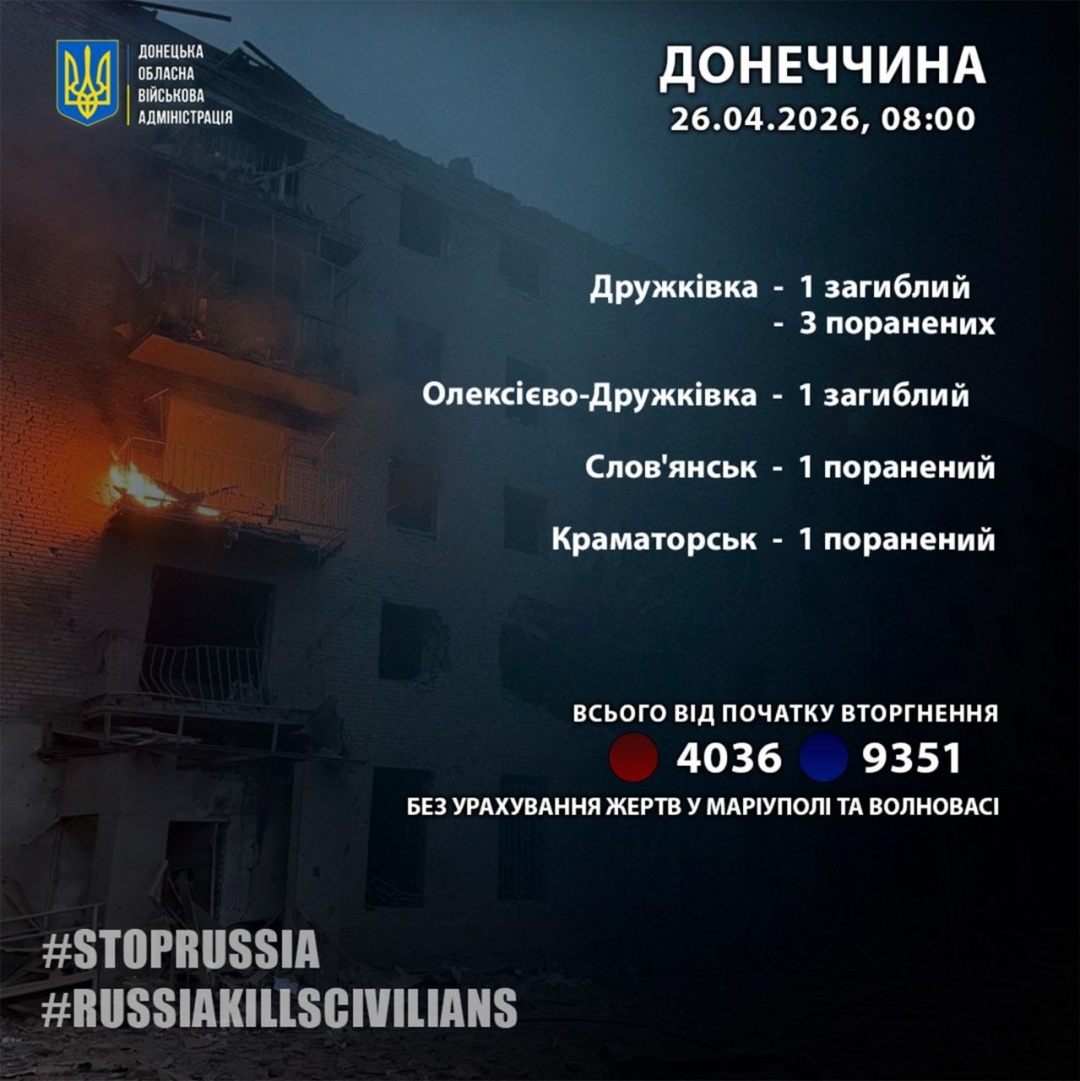 «За 25 квітня росіяни вбили 2 жителів Донеччини: у Дружківці та Олексієво-Дружківці», - повідомив Філашкін.