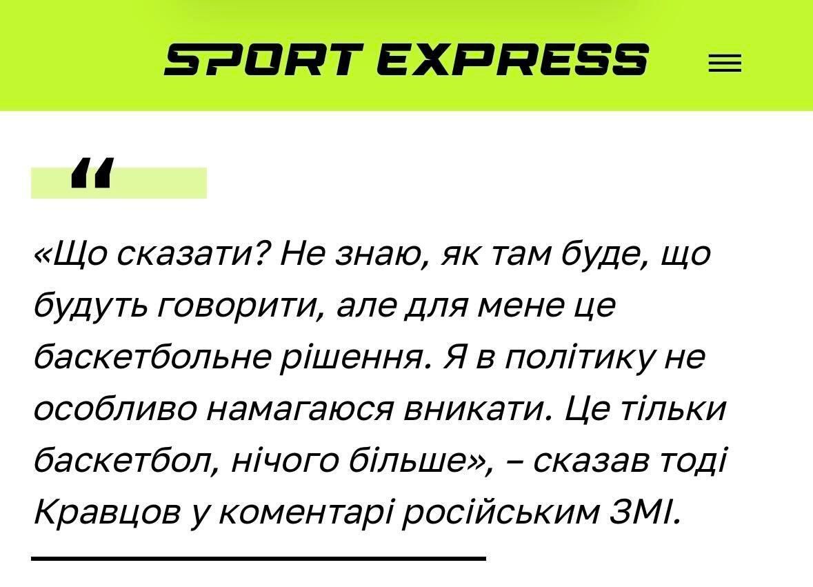 Що сказати? Не знаю, як там буде, що будуть говорити, але для мене це баскетбольне рішення. Я в політику не особливо намагаюся вникати. Це тільки баскетбол, нічого більше,