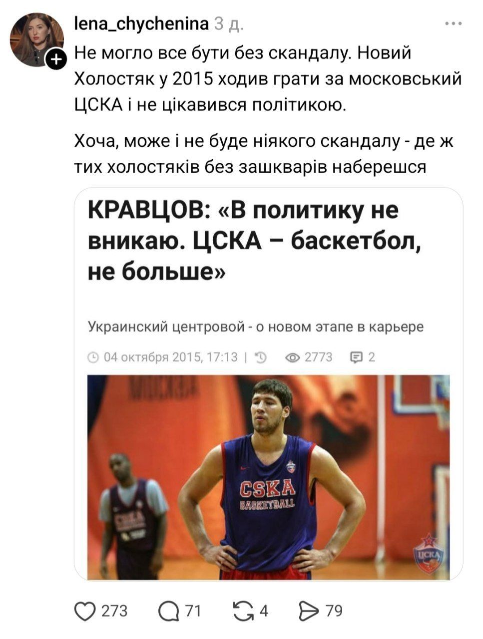 Після того як стало відомо про нового героя шоу, люди почали активно цікавитися його біографією. Уже в перший день вони виявили цікавий етап його кар'єри: у 2015 році він виступав за російський баскетбольний клуб ЦСКА, через що опинився під хвилею критики, повідомляє 24 Канал.