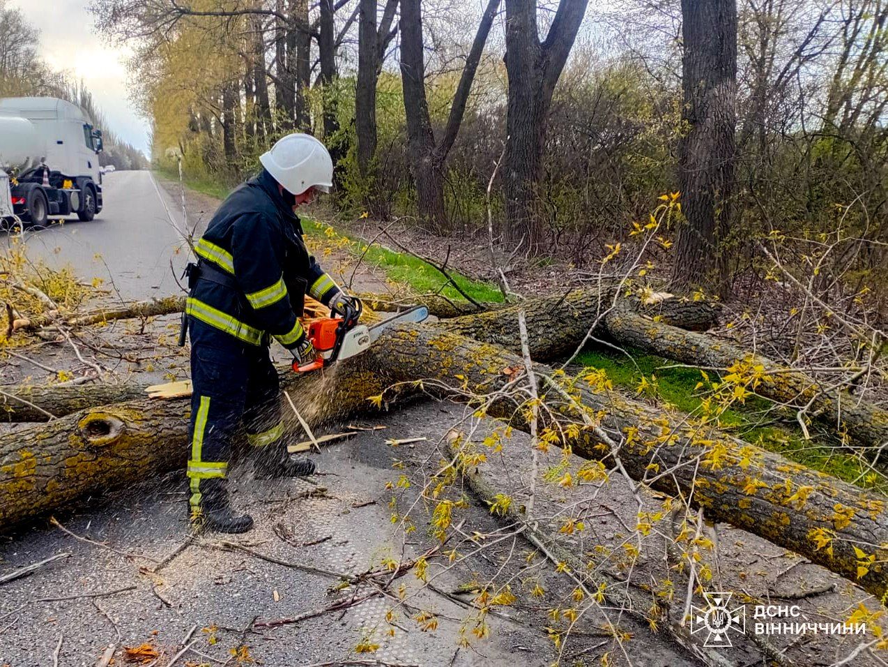 У Вінницькій області надзвичайниками довелось розчищати дороги від дерев, що впали. Вони відновили рух та забезпечили безпечний проїзд транспорту.