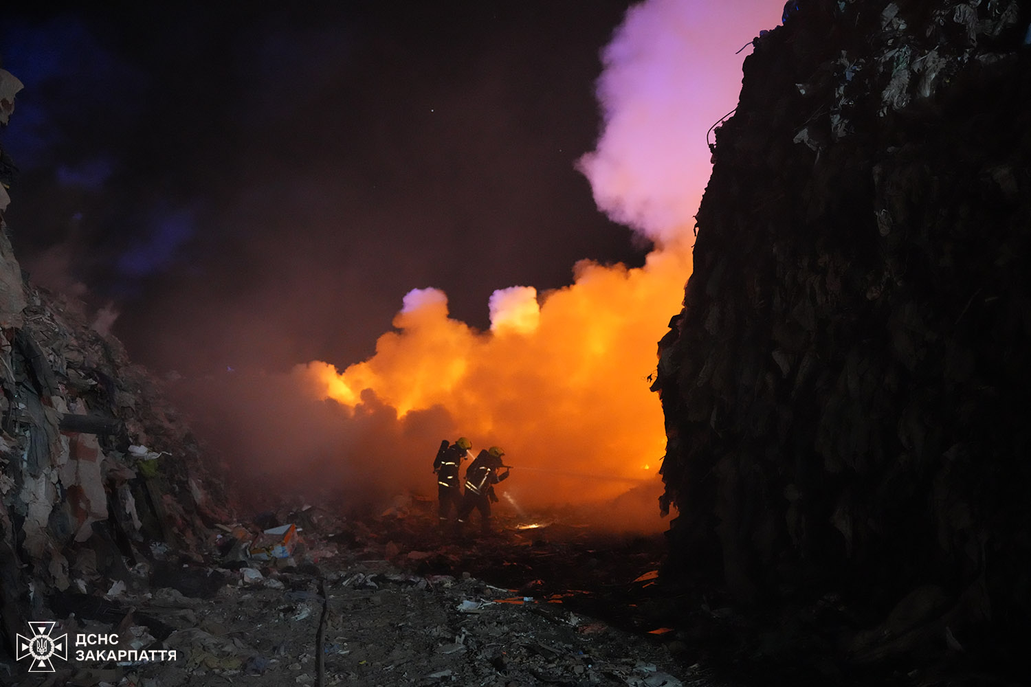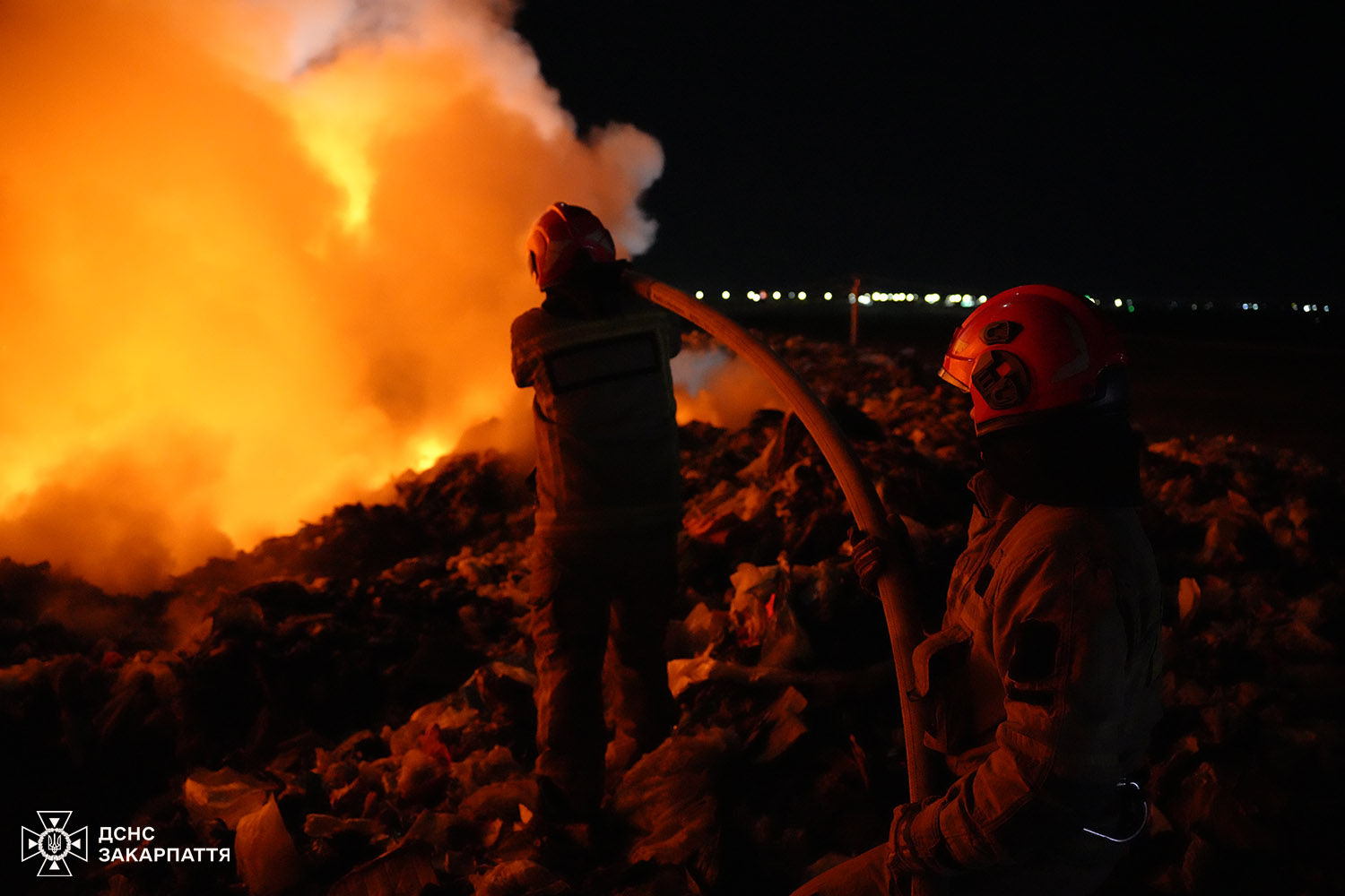 Триває ліквідація значної пожежі на полігоні побутових відходів у селі Барвінок в Ужгородському районі на Закарпатті.