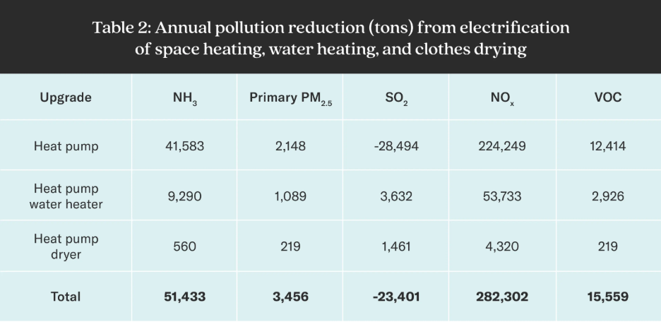 If all the homes that currently burn fossil fuels for their water heating switched to a HPWH — our air would be a lot cleaner. According to Rewiring America’s great study called “Breathe Easy,” a US filled with HPWHs would save tens of thousands of tons of different types of pollution.