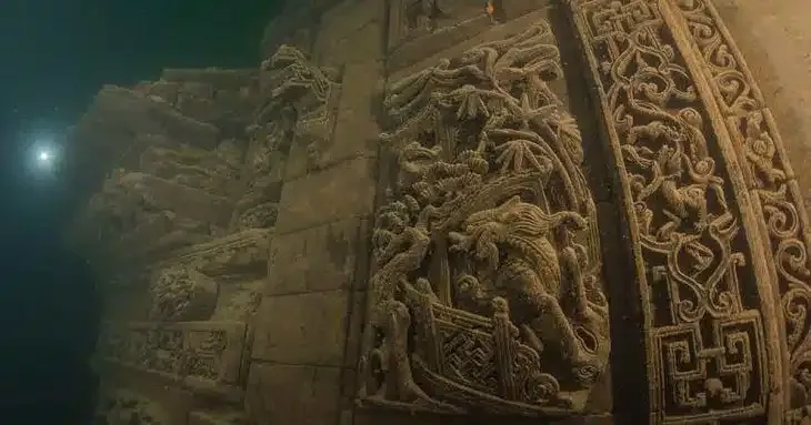 Дослідники виявили на стінах та фасадах різьблені зображення драконів та феніксів. Також під водою збереглися великі ворота, кам’яні арки, сходи та цілі вулиці, що дозволяє детально вивчити колишню структуру міста.