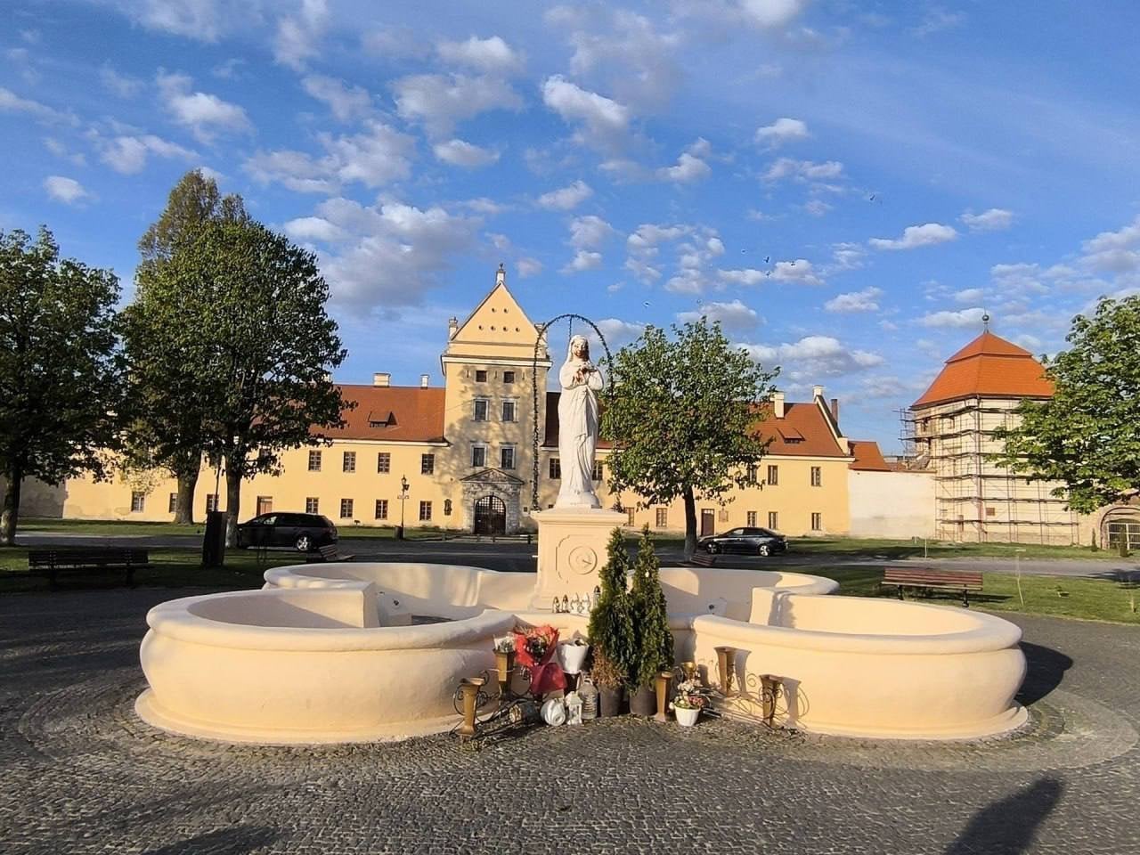 Під час патрулювання території 28 квітня патрульні поліцейські зафіксували факт забруднення фігури Матері Божої, розташованої на площі Вічевій у Жовкві. У коментарі для ТСН.ua в поліції уточнили, що невідомі облили її кетчупом.