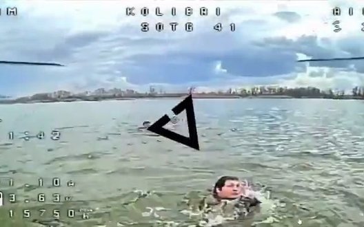 Двоє окупантів стрибають в озеро і уплав намагаються втекти від безпілотника. ВIДЕО