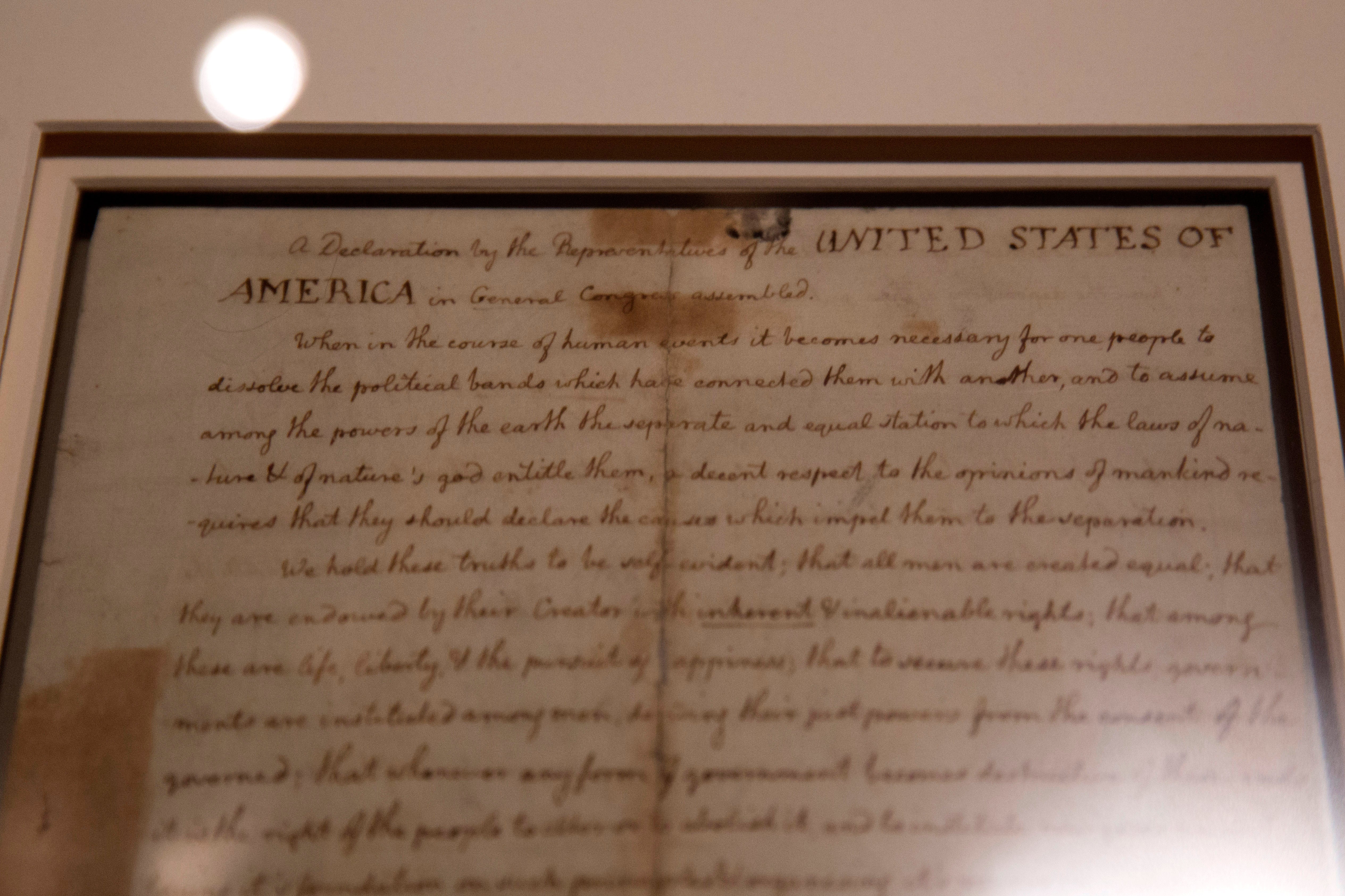 In its opening paragraph, Jefferson proposed that “the Laws of Nature and of Nature’s God” grant humans equal status and entitle Americans to dissolve “the political bands” with Britain. As historians have shown, Franklin added a phrase to suggest that those rights had been “endowed by their Creator.”